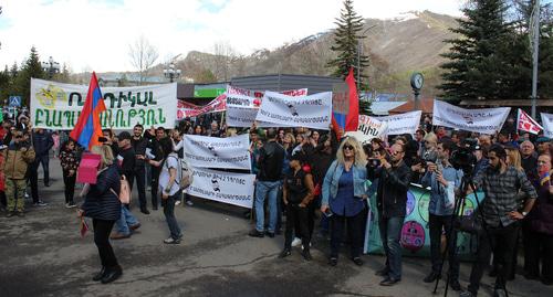 Участники акции выступили против добычи золота на Амулсаре, отметил активист Гегам Оганян. «Этой акцией мы хотим показать нашу неуступчивость в вопросе Амулсара. Никакое заключение (результаты экспертного исследования экологических рисков разработки Амулсарского рудника – прим. «Кавказского узла») не сможет нас сломать. Мы не позволим загрязнять и уничтожать нашу родину», - рассказал корреспонденту «Кавказского узла» Оганян, добавив, что по словам вице-премьера Армении Тиграна Авиняна, результаты исследования будут обнародованы в мае.