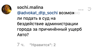 "Возможно ли подать в суд на бездействие администрации города за причинённый ущерб авто?" - интересуется sochi.malina.