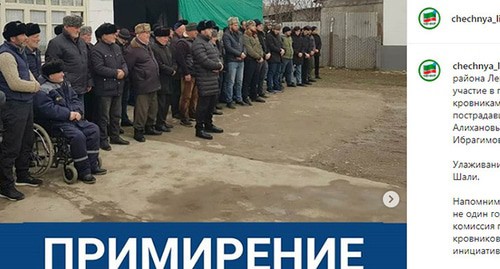 О другом случае примирения администратор этого же паблика сообщил 19 января. "Кадий Шалинского района Лема Хашуев принял участие в примирении между кровниками трехлетней давности, пострадавшей стороны Алихановыми и виновниками Ибрагимовыми. Улаживание состоялось в городе Шали", - написал автор публикации.