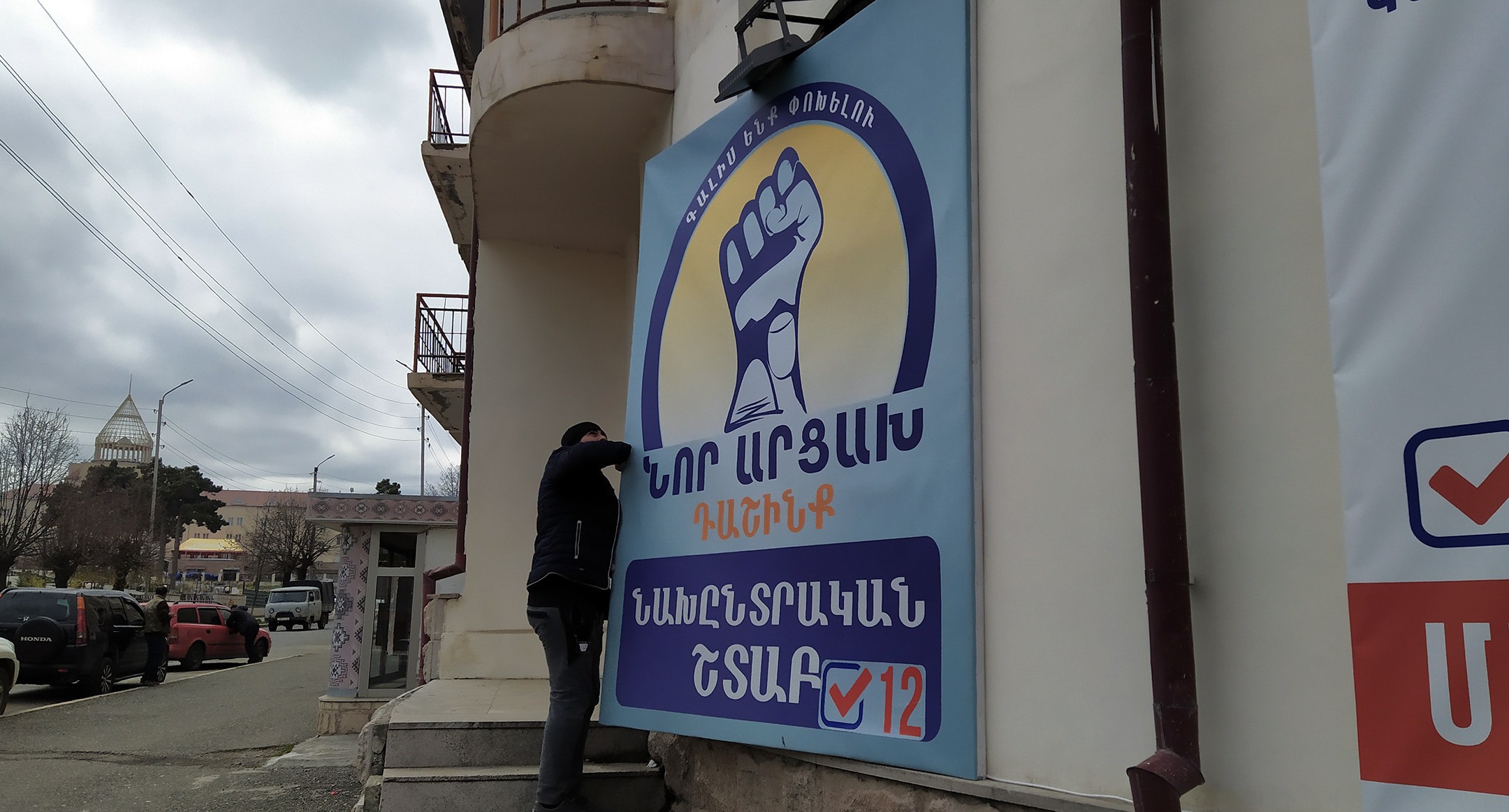 Араик Арутюнян перед вторым туром президентских выборов продолжил агиткампанию на местном телевидении и радио. Штаб Масиса Маиляна снимает предвыборные стенды и баннеры в Степанакерте.