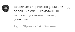 "Он реально устал или болен. Вид очень измотанный, мешки под глазами, взгляд уставший", - прокомментировала пользователь tahaeva.m.