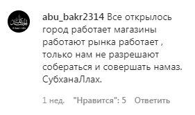 Некоторые верующие считают, что мечети открывать пора. «Все открылось, город работает, магазины работают, рынки работают, только нам не разрешают собираться и совершать намаз», - написал пользователь abu_bakr2314 в комментарии к видео 18 мая на официальной странице ДУМ Кабардино-Балкарии в Instagram, на котором президент России Владимир Путин призвал жителей республики прислушаться к рекомендации муфтията не собираться в Рамадан.
