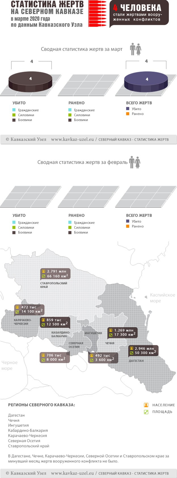 Инфографика. Статистика жертв на Северном Кавказе в марте 2020 года по данным Кавказского Узла