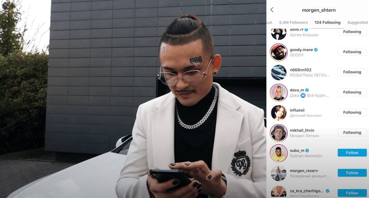 Рассказывая об условиях конкурса а опубликованном в YouTube 7 октября видео "Новый Мерин ищет Нового Хозяина!", Моргенштерн продемонстрировал свой список подписок, в котором видны аккаунты старшей сыновей Кадырова и его, а также аккаунт ya_pomoshnik_kra_95, публикации в котором пишутся от имени Рамзана Кадырова. К 16.45 мск 7 ноября ни одного из этих аккаунтов в списке подписок Моргенштерна уже не осталось.