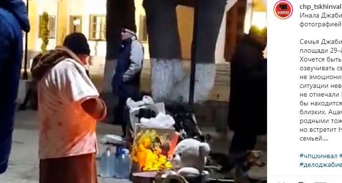 Близкие Инала Джабиева провели новогоднюю ночь на акции протеста на городской площади Цхинвала, сообщила блогер из Южной Осетии Arzu Jio. В частности, она разместила на своей странице в Instagram видео, на кадрах которого мать Инала Джабиева Майя Джабиева стоит перед фотографией сына, помещенной на скамью в окружении свечей. Помимо свечей рядом с фотографией лежат цветы, фрукты и сладости. "Вот так, сынок, мы встречаем в этот раз Новый год", – привела блогер в описании к видео слова Майи Джабиевой.
