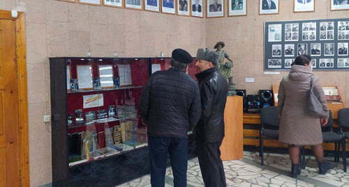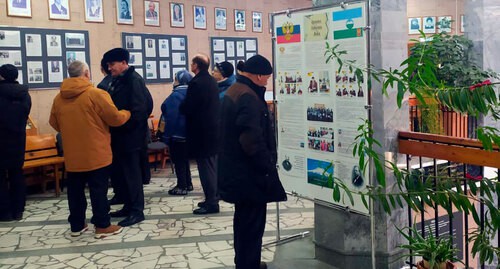Участники траурного митинга. Фото Людмилы Маратовой для "Кавказского узла""Уже третий год подряд мы в рамках проекта "Времена. События. Люди" готовим новые экспозиции и посвящаем их 100-летию образования Кабардино-Балкарской Республики. В 2019 году выставка была посвящена русским учителям, которые приехали сюда обучать людей грамоте, в благодарность за их труд, за то, что наши народы получили образование. В 2020 году выставка была посвящена 75-летию Победы в Великой Отечественной войне. Были представлены материалы обо всех направлениях в ходе войны - о работе в тылу, о партизанском движении, о героизме на фронте", - рассказала Теммоева.
