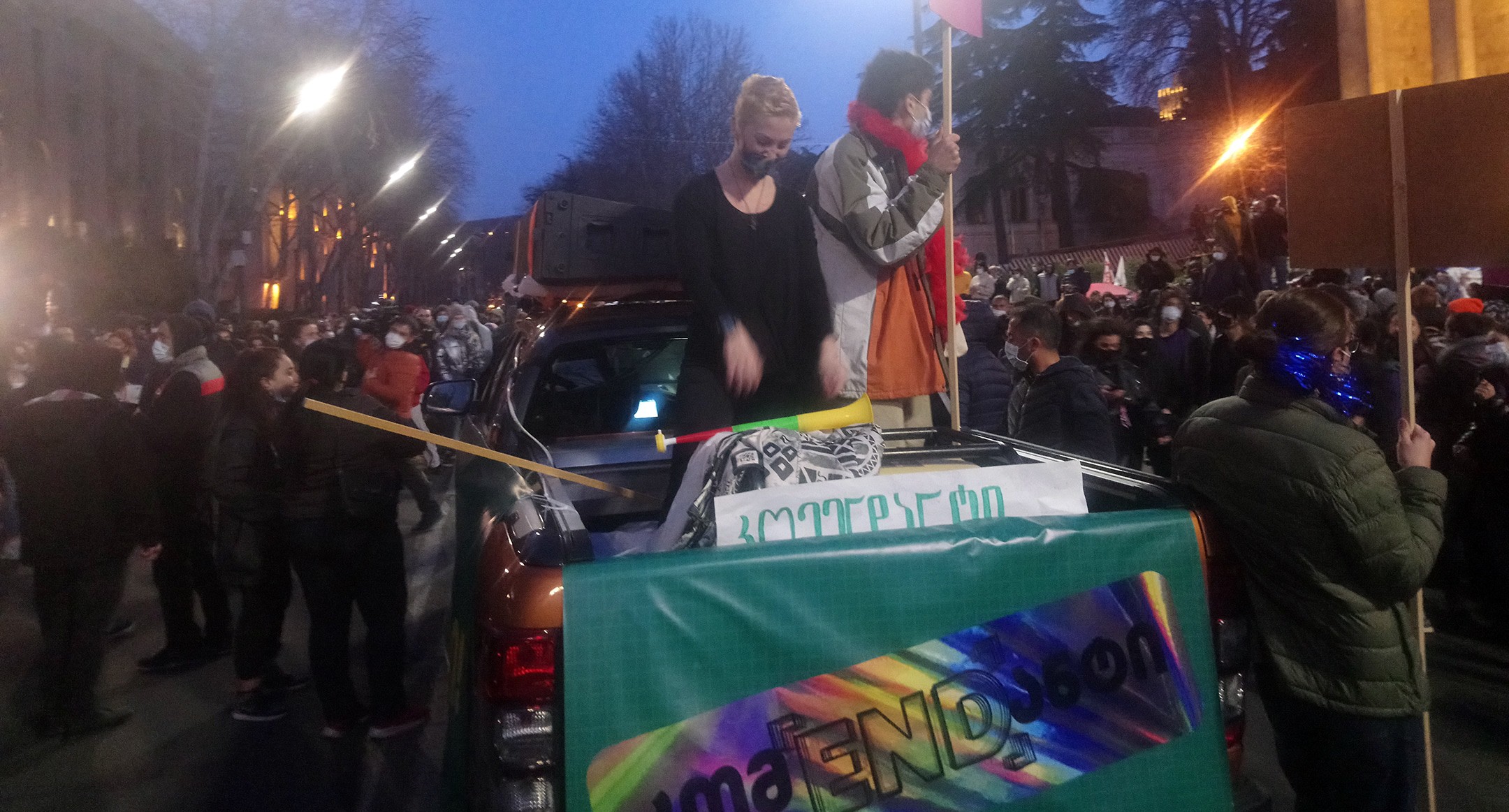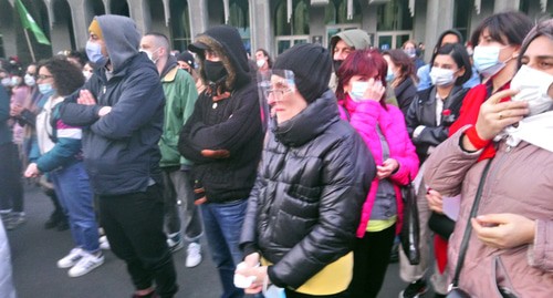 Как писал "Кавказский узел", 3 апреля около 5000 человек, по данным общественного движения "Сирцхвили" (Стыдно), собрались перед зданием парламента Грузии на акцию протеста против комендантского часа. Планировалось, что митинг продлится до утра. Полицейские пригрозили, что все, кто остался на проспекте после 21.00 (20.00 мск), будут оштрафованы. Несмотря на это, после наступления комендантского часа на акции осталось около 200 человек.