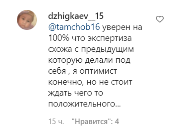 "Уверен на 100 процентов, что экспертиза схожа с предыдущей, которую делали под себя. Я оптимист, конечно, но не стоит ждать чего-то положительного", написал dzhigkaev__15.