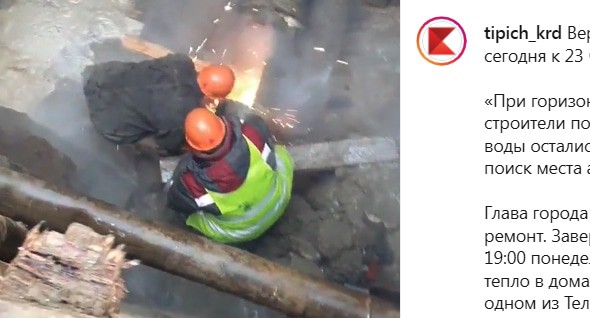 "19 декабря при строительстве коммуникаций была повреждена подземная тепломагистраль в районе улицы Зиповской и улицы имени Котлярова. Из-за этого были отключены две котельные, без тепла и горячей воды остались жители около 20 многоквартирных домов по улице Зиповской", - сообщила сегодня пресс-служба администрации Краснодара.