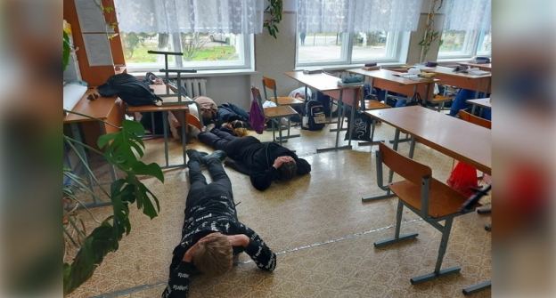 На кадрах видео, опубликованном 24 ноября в Telegram-канале Mash Gor, показано, как трое мужчин в камуфляжной одежде ворвались в класс школы, их лица были закрыты. Угрожая оружием, они потребовали от школьников встать, поднять руки за голову и подойти к окну. На фотографиях, приведенных в ролике, показано, что дети легли на пол.