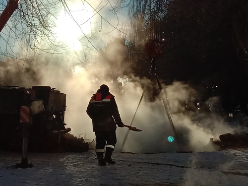 Корреспондент "Кавказского узла" посетил проблемный микрорайон города. В послеобеденное время во дворе домов №№56 и 58 на улице Рокоссовского работала бригада ООО "Концессии теплоснабжения". Рабочие вырыли три ямы, из которых валил густой пар. В большой яме с теплотрассы были сняты верхние плиты. Кусок старой трубы, в которой образовался порыв, рабочие меняли на новую трубу. К журналисту подошел сотрудник Концессий и на условиях анонимности пояснил причину аварии. По его словам, трехметровый участок трубы диаметром 200 мм из-за сильного износа прорвало. "К вечеру его заменят на новую трубу. И с этого времени тепло начнет поступать в квартиры", - пообещал собеседник.