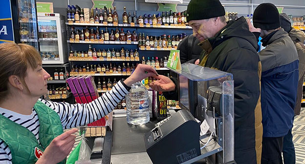 В магазине рассказали, что с 9 февраля продажа воды многократно выросла. "Сегодня утром вода ещё было, но буквально после открытия за три часа воду объёмом 5 литров разобрали. Очень много людей идёт именно за водой. Обратили внимание, что и полуторалитровые бутылки сейчас больше покупают. Мы об этом сообщили руководству, сказали увеличат завоз воды", - рассказали в магазине.