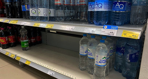 В обычном продуктовом магазине, где также побывал корреспондент "Кавказского узла", рассказали что воды стали покупать больше, но она есть, и цена не изменилась.
