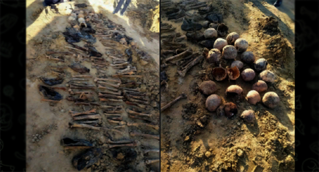 "В Дагестане нашли массовое захоронение. На некоторых черепах видны дырки. 18 скелетов были найдены в районе гостиницы "Джами" между Махачкалой и Каспийском. Останки нашли при строительных работах. На месте работает полиция и следователи", - говорится в публикации.