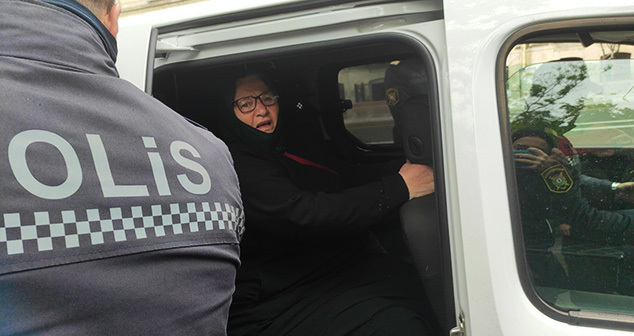 Спустя несколько минут после начала акции сотрудники полиции предложили женщине поехать с ними для записи на прием в администрацию. "Меня повезли к зданию кабинета министров, там в приемном отделе меня записали на прием и сказали, что через неделю или десять дней пригласят на встречу к ответственному работнику по делам заключенных", - сообщила Рахима Гусейнова после того, как ее увезли.