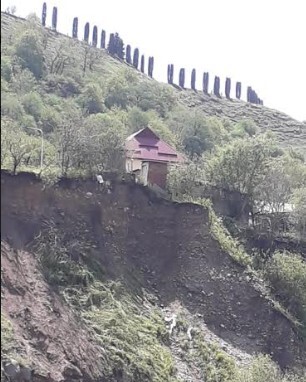 Под угрозой обрушения оказался дом местного жителя Хакима Гамаева, поскольку разлившаяся река подмыла грунт под домом, и он оказался на краю обрыва, рассказала корреспонденту "Кавказского узла" супруга Гамаева Рая Жазаева.