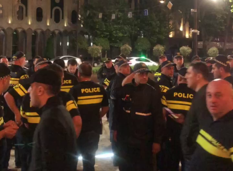 Собравшиеся на площади у парламента пели гимн Грузии в тот момент, пока Бека Григориадис и его брат ставили палатку у парламента. Силовики не препятствовали им, следует из видео, опубликованного сегодня в Telegram-канале Tbilisi Life.