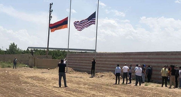 Ранее, 20 июня, на территории завода были подняты государственные флаги Армении и США. Представитель завода Тигран Акопян заявил на брифинге в этот день, что этим администрация завода подала сигнал, что здесь работают гражданские сотрудники.