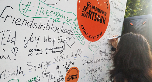 Подобные мероприятия она считает очень важными для того, чтобы как можно шире рассказать о проблемах Нагорного Карабаха. "Нам всем надо писать, говорить, протестовать, обращаться, напоминать миру о том, что в Арцахе (Нагорном Карабахе) 120 тысяч человек находятся в тотальной блокаде. Там борьба за жизнь на всех уровнях", - добавила она.