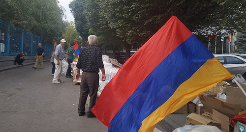 Участники инициативы сообщили, что продолжают сбор продуктов возле офиса ООН с требованием доставить гуманитарный груз в Нагорный Карабах в рамках продовольственной программы ООН.