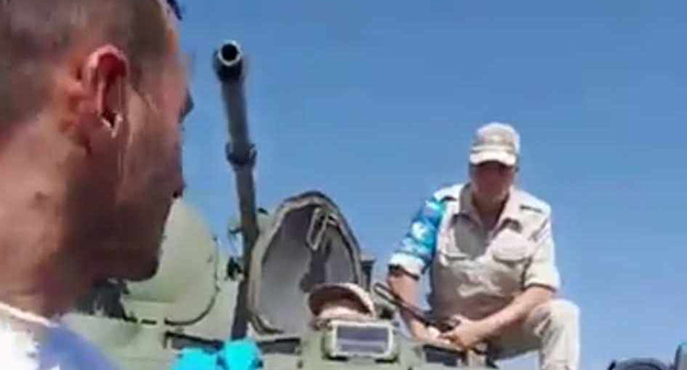 Видеотрансляция с места событий велась на странице представителя Штаба народного движения, председателя Революционной партии Артура Осипяна в Facebook*. На кадрах видно, как активисты задают вопросы российским военным, в том числе офицеру, о том, почему миротворцы не разблокируют Лачинский коридор. Также на видео активисты пытаются не выпустить на дорогу БТР с российскими военными, однако это им не удается. Затем российские военные оттаскивают в сторону автомобиль, которым была перекрыта дорога. В какой-то момент человек за кадром кричит, что у автомобиля "сломали буфер" (вероятно, имеется в виду бампер), однако явных повреждений машины на кадрах не видно. "Кавказский узел" не публикует видеозапись трансляции из-за неоднократно звучащей на видео нецензурной брани.