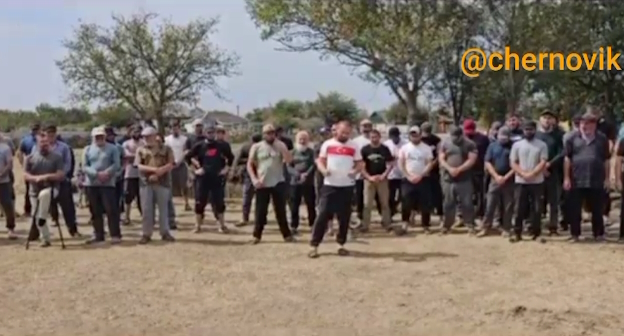 Публикация проиллюстрирована видеороликом, на котором видны несколько десятков человек. Обращение от имени собравшихся к Меликову и правительству Дагестана озвучивает один из них.