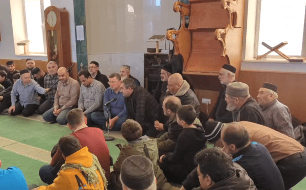 Массовая встреча с переселенцами из сектора Газа прошла в Джума-мечети, сообщила местная администрация. С беженцами в мечети встретился "глава района Махмуд Амиралиев и выразил слова поддержки", говорится в сообщении. На видеозаписях из мечети видно, что на встрече собрались десятки людей, в первых рядах сидели дети, некоторые из них снимали происходящее на телефоны. Слова чиновников переводились на арабский язык.