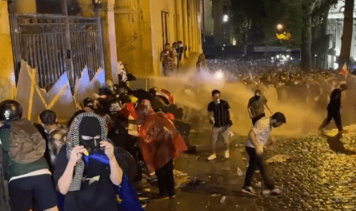 В ночь на 1 мая  противники закона об иноагентах попытались заблокировать здание парламента Грузии. Полиция оттеснила их, применив слезоточивый газ. Тысячи протестующих отказались расходится, они стояли с флагами Грузии и Евросоюза, периодически скандируя: "Грузия!". В ночь на 1 мая на проспекте Руставели силовики также применяли  водометы 26