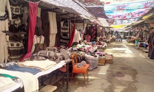 К публикации прикреплено видео, на кадрах которого показаны товары, разложенные на бетонных выступах, выполняющих роль прилавков. Между выступами выкопаны траншеи, они выполняют роль рядов, по которым ходят покупатели и выбирают товар. Рядом с товаром видны торговцы.