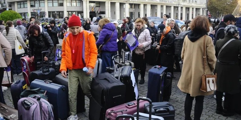 Жительницы Грузии провели сегодня "женский марш" по улицам Тбилиси до резиденции основателя правящей партии Бидзины Иванишвили. Они "символически пришли с чемоданами", заявляя, что "Грузинская мечта" "довела страну до массовой эмиграции", сообщает JAMnews.