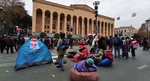 Около парламента в Тбилиси проходят акции протеста. Так, 17 ноября участники протестов против результатов парламентских выборов установили более 20 палаток, перекрыв проезжую часть проспекта в Тбилиси. 19 ноября силовики жестко разогнали протестующих, задержав 16 человек. Двое пострадавших были госпитализированы. 23 ноября протестующие перекрывали движение по площади Героев в центре Тбилиси.