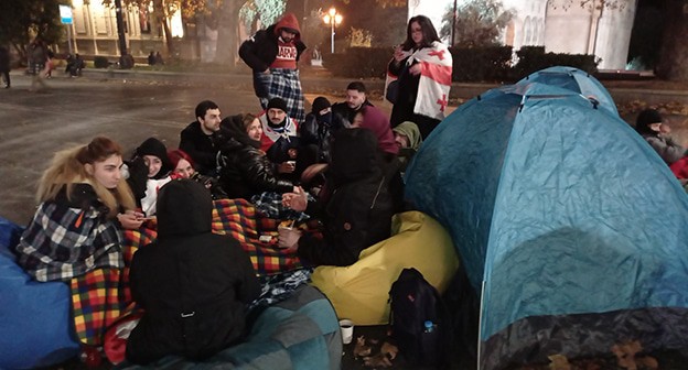 Как писал "Кавказский узел", в Тбилиси после парламентских выборов проходят акции протеста с требованием не признавать их результаты. Так, 17 ноября участники протестов против результатов парламентских выборов установили более 20 палаток, перекрыв проезжую часть проспекта в Тбилиси. 19 ноября силовики жестко разогнали протестующих, задержав 16 человек. Двое пострадавших были госпитализированы. 23 ноября протестующие перекрывали движение по площади Героев в центре Тбилиси. Сегодня студенты провели перформанс у здания парламента.