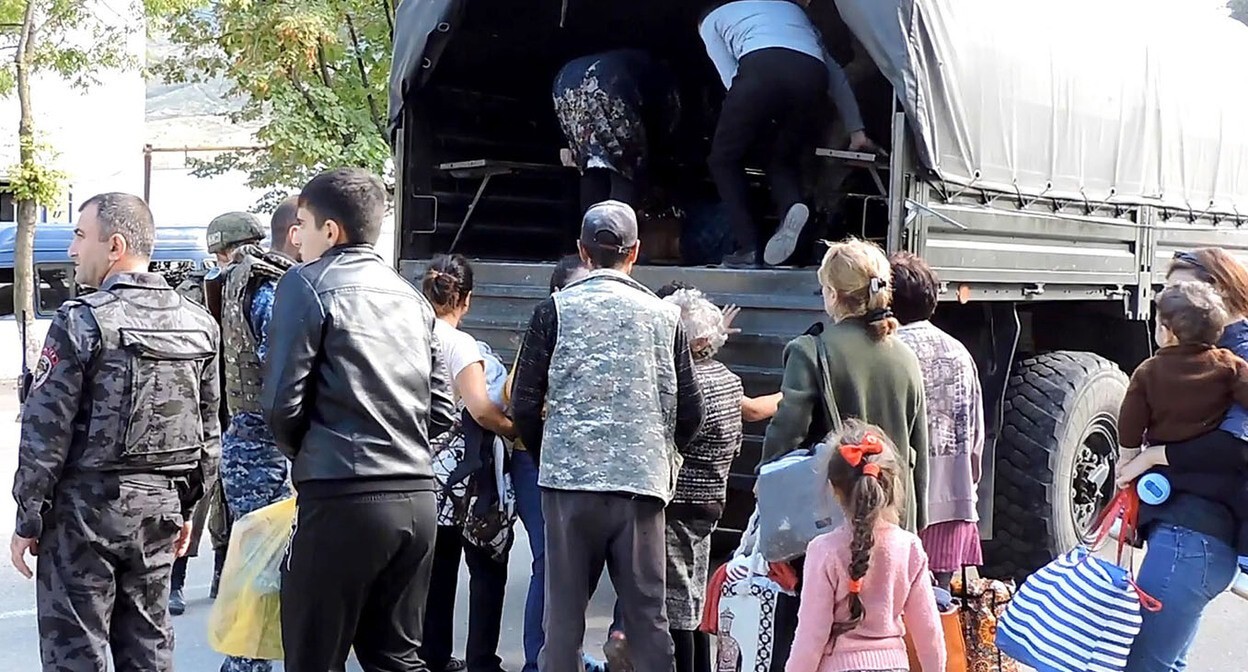 К 7 октября 2023 года в Армению прибыли 100 632 вынужденных переселенца из Нагорного Карабаха. К 14 октября 2023 года в регионе оставалось не более 40 жителей, а к сентябрю 2024 года - только 14 армян, заявили карабахские правозащитники. В годовщину военных действий карабахцы рассказали, что были вынуждены уехать, когда их населенные пункты стали подвергаться обстрелам и в них вошли азербайджанские силовики.