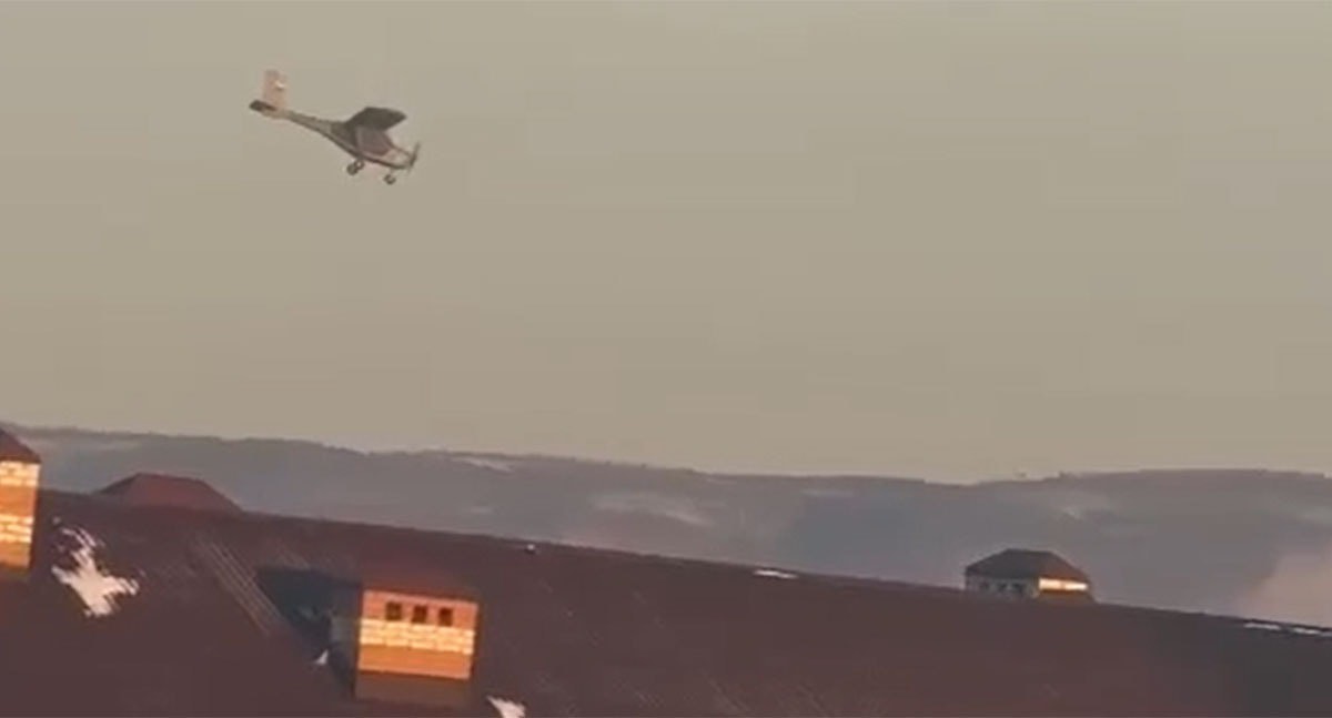 На видео средним планом показан город и летящий в небе беспилотник, в кадре виден многоэтажный дом. На фоне слышны выстрелы, в том числе автоматные очереди. Оператор приблизил кадр в тот момент, когда дрон начал заходить на цель. Аппарат пролетел над крышей многоэтажки и стал снижаться, атакуя находящуюся неподалеку территорию.