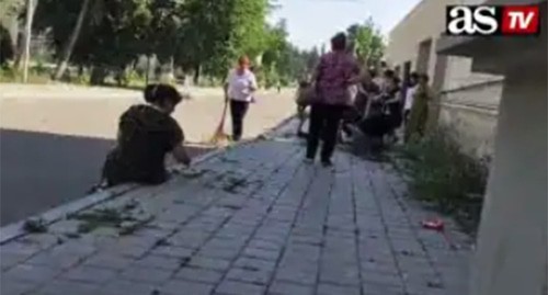В полутораминутном видео, опубликованном на канале Саядоглу, показаны кадры участия большого числа людей в уборке территории. За кадром Саядоглу поясняет, что это работники учреждений, подведомственных Товузскому центру культуры – сотрудники местных театра, библиотеки, сельских клубов, которых принуждают убирать территории в преддверии визита министра культуры вместо того, чтобы они выполняли свои профессиональные обязанности, передал корреспондент "Кавказского узла".