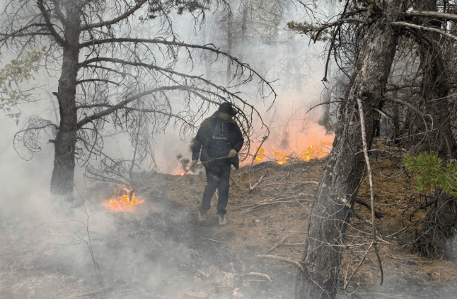 Опасности возгорания близлежащих населенных пунктов в настоящее время, по мнению местного жителя, нет.