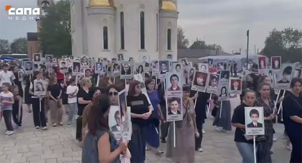 Отметим, что сегодня на светодиодных экранах на улицах Владикавказа появился рисунок 12-летней Азы Гумецовой, заложницы, погибшей во время захвата школы, - изображение однокрылого ангела. Рисунок подписан словами: "Пока вы помните – мы живы", сообщает телекомпания "Осетия – Ирыстон". 1 сентября 2004 года боевики захватили 1128 заложников в спортзале школы №1 в Беслане. Операция по их освобождению завершилась 3 сентября 2004 года. В результате теракта погибли 334 человека, в том числе 186 детей, еще 810 человек получили ранения. "Кавказским узлом" подготовлены справка "Террористический акт в Беслане (1-3 сентября 2004 года)" и хроника теракта и последовавших за ним событий.