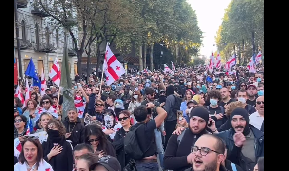 Движение у парламента Грузии в день муниципальных выборов заблокировано уже днем, на проспекте Руставели собираются участники шествий, которые прошли по центру Тбилиси. Из регионов Грузии едут колонны автомобилей для участия в акции.
