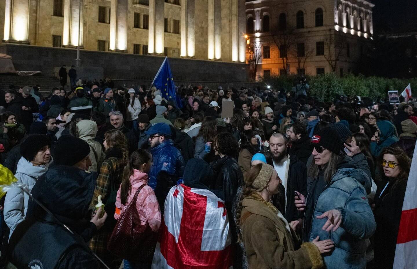 Как писал "Кавказский узел", 11 февраля, в 441-й день непрерывных акций, участники собрания на проспекте Руставели провели у парламента пикет в поддержку политзаключенных.