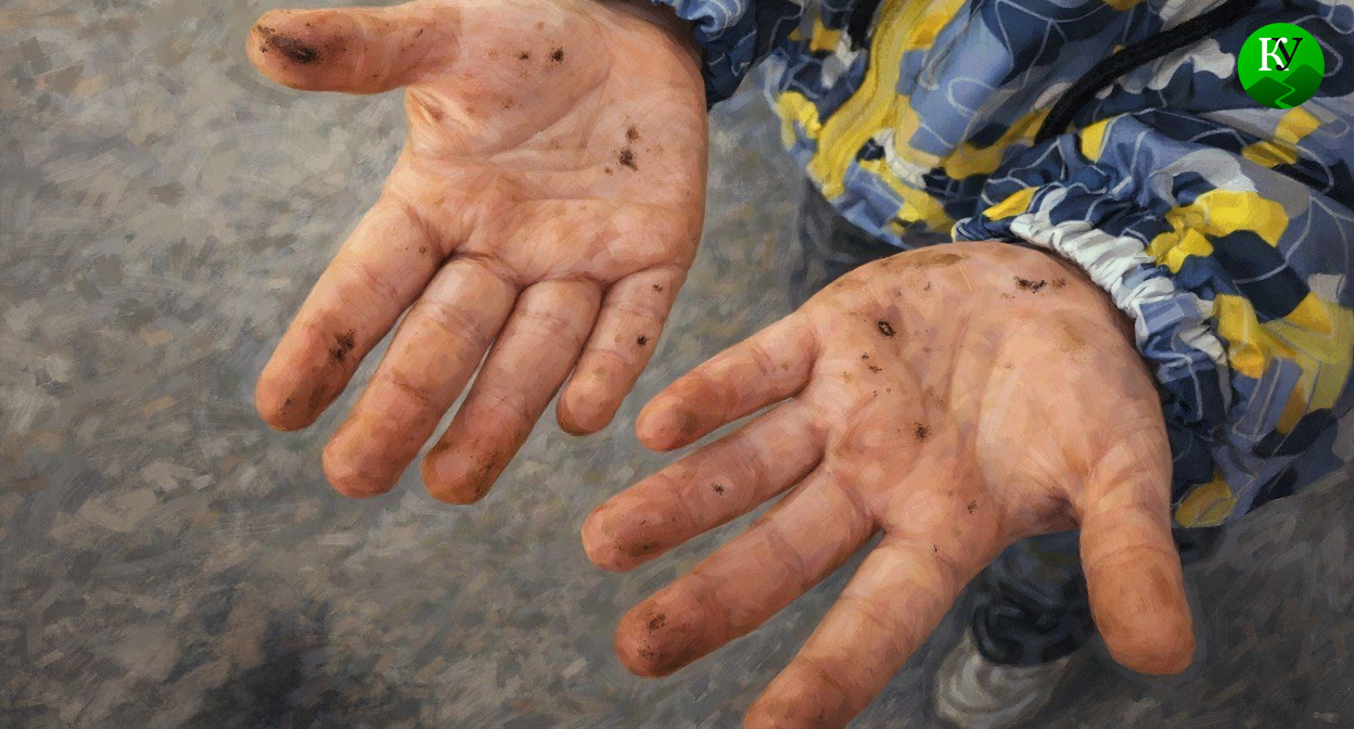 Другая участница этой группы опубликовала фотографию детских ладоней с черными маслянистыми пятнами. "Ребенок поиграл во дворе 10 минут, все руки в мазуте", - написала она.