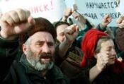 У блок-поста в селе Тквиави в зоне грузино-осетинского конфликта состоялась акция протеста беженцев из Абхазии