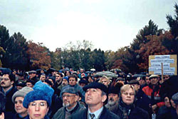 У нас у всех и у каждого отнимают человеческое достоинство. Нельзя позволить затыкать себе рот. Нельзя позволить перестать думать. Нельзя позволить перестать принимать на себя ответственность за страну. Мы должны сказать "нет" тому, что у нас отнимают свободу, свободу слова, свободу думать, свободу принимать участие в развитии страны, свободу выбирать. У нас это сейчас отбирают. Мы можем промолчать. Мы можем опять спрятаться на своей кухне. Мы можем опять держать фигу в кармане, как держали многие десятилетия. Это всегда заканчивается одним: кровью. Десять лет на Северном Кавказе убивают тысячи людей, убивают чеченцев, убивают русских, убивают ингушей. И мы на это смотрим. И мы это позволили. Мы соучастники в этой кровавой драме. На нас на каждом кровь тех, кто убит в Чечне. На нас на каждом кровь тех, кто погиб в "Норд-Осте", тех, кто погиб в Беслане. Мы это позволили. Мы должны, наконец, сказать "нет". Это наша страна. Мы здесь родились. Здесь живут наши дети. Мы обязаны им обеспечить будущее. Мы сумели это сделать в 1991 году. Мы отобрали страну у чекисткой власти. Мы отдаем им нашу страну сейчас. Скажем "нет". Отстоим страну. Отстоим нашу Конституцию. Мы за нее голосовали. Скажем "нет"!