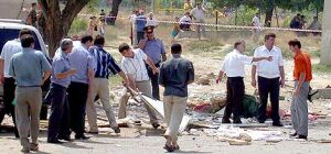 Кортеж председателя правительства примерно в 14.25 мск подорвался на заложенном на обочине дороги фугасе большой мощности в районе строительного (т.н. "мальсаговского") рынка в муниципальном округе Ольтиево в Назрани, сообщает ИТАР-ТАСС. Это участок дороги был очень удобным местом для закладки фугаса, поскольку недавно здесь начались работы по прокладке новых канализационных труб, и дорожное полотно было перекопано. Специалисты МВД установили, что бомбы были спрятаны в груде мусора.
