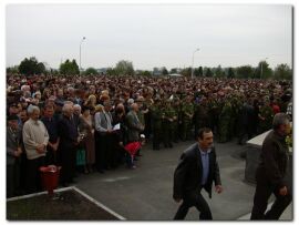 На кладбище пришло большое количество людей - близкие и родственники погибших, пострадавшие, жители города, а также других районов Северной Осетии. После удара колокола прозвучал набатный перезвон, а затем - звук метронома. Диктор назвал в алфавитном порядке поименный список всех погибших в школе №1, сообщает "Интерфакс".