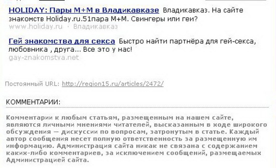 к сожалению, читая все эти комментарии снова убедился, что живем мы по-прежнему в настоящей деревне, куда давно уже не заглядывал свежий ветер свободы. мозги у людей по прежнему забиты "нашими старшими", "великой нацией", "образцами чистоты и порядочности" и так далее. быдлолюди, которые все это говорят не видят самых простых отвратительных вещей, которые творятся под их носами как раз под этими громкими лозунгами о чистоте традиций и великой нации. нация давно в спортивках грызет семечки по углам, а традици покрылись слоем говяжьего жира. и настолько люди слепы, что никто и не подумал обратить внимание на две рекламные строчки, разделявшие ту заметку и комментарии.