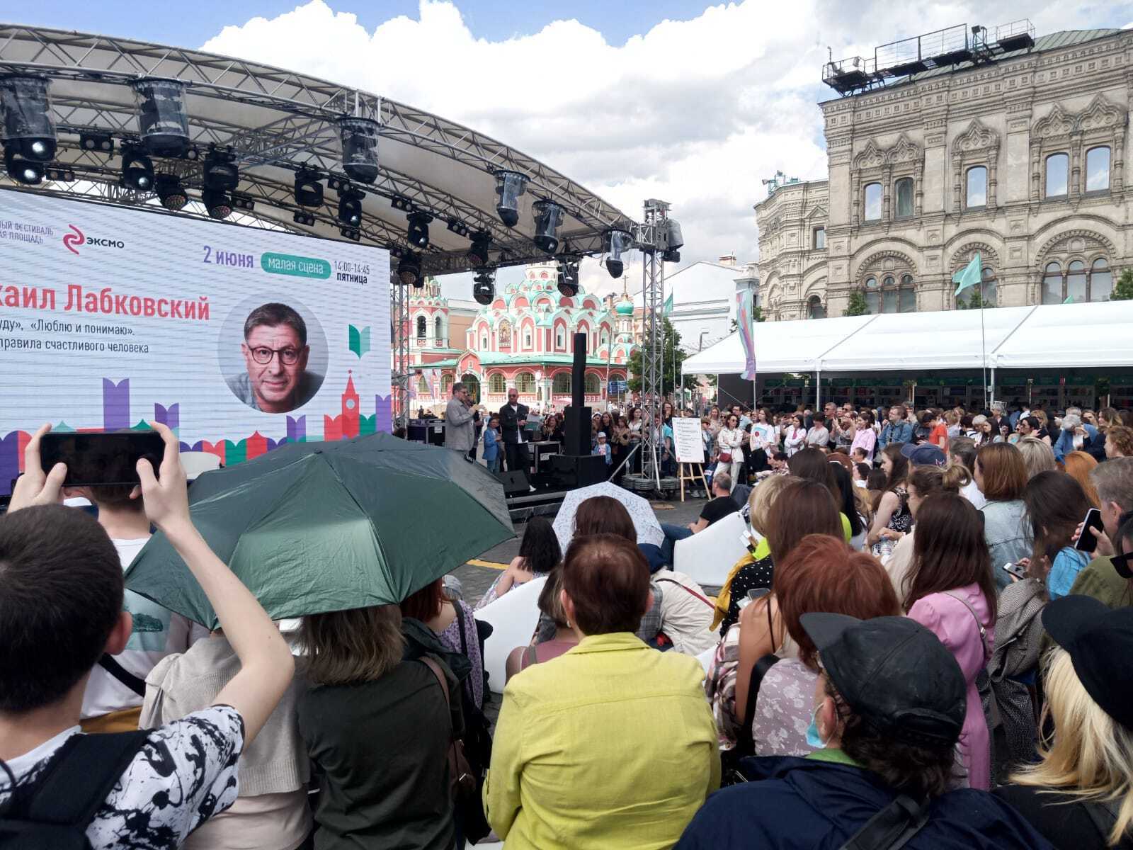 тут происходит крупнейшая книжная ярмарка страны - "красная площадь". то есть все пространство площади занято шатрами и павильонами, где с утра и до 10 вечера проходят лекции, презентации, мастерклассы6 встречи с писателями и тд... очень и очень много всего интересного. выбрать есть из чего. всем москвичам в эти дни очень бы советовал заглянуть сюда, предварительно посмотрев программу.