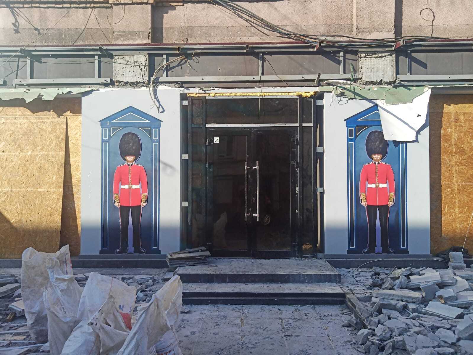 сфоткал пару дней назад, уже после сноса. пристройки нет, но охрана ее высочества бдит.