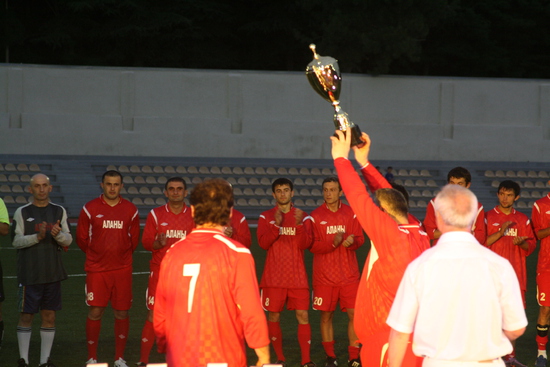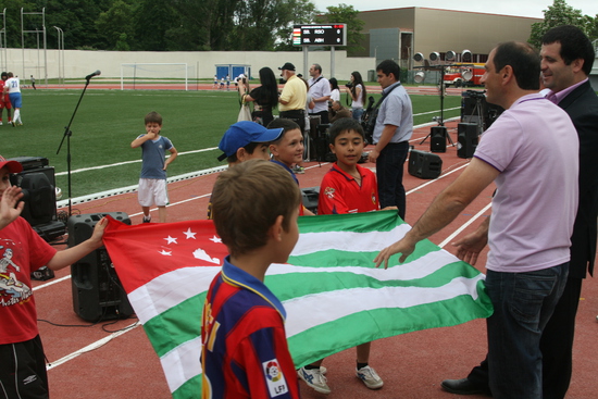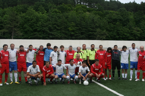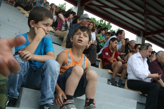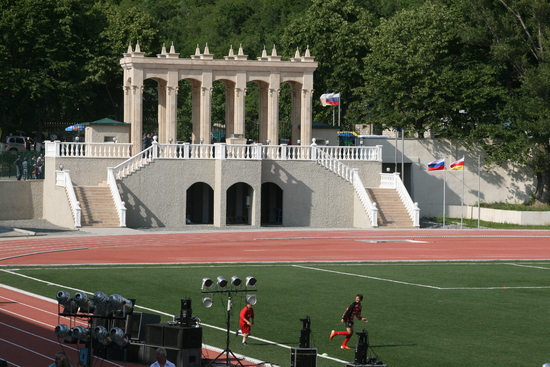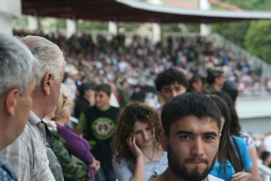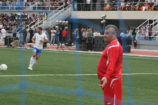 попал на открытие стадиона в Цхинвале, названного в честь Гурама Цховребова. стадион маленький, пятитысячник, но очень уютный, в окружении зелени. отстроен за счет Алишера Усманова. было официальное открытие, потом матч "сборных Южной Осетии и Абхазии", а потом продолжительный концерт. понятно, что звездой открытия был Кокойты, его было очень много. не знаю, может цхинвальцы скаучают по своему президенту, но по мне его было чересчур много. не знаю сколько раз он брал в руки микрофон, но столько говорить невозможно... одно лишь награждение после матча всех и всем длилось наверно почти час, как это возможно? в общем, Эдуард Кокойты устроил себе отличную пиар-компанию, не приложив к этому никаких усилий. порадовало другое - абсолютно свободная открытая атмосфера, никаких проверок при входе на стадион, да и на стадионе никаких ограничений передвижения, ни журналистам ни простым людям. не успел закончитсья матч, как на стадион повалили дети гонять мяч. Кокойты был абсолютно доступен, но я не знаю у кого могло возникнуть желание взять у него интервью после того как он час сотрясал воздух над стадионом своими пафосными речами. дальше фотографии, с небольшими комменатриями.