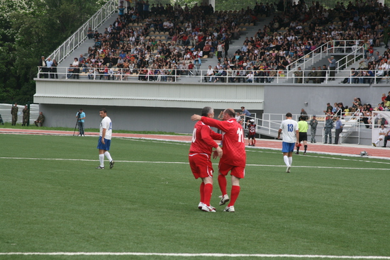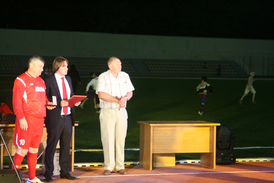 дальше сам матч. особо про него сказать нечего, погоняли мяч на радость публике, Президент несколько раз уходил с поля и возвращался, в общем был активен и забил два или три гола. общий счет 7:7.
