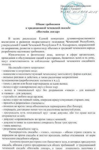 Об "Общих требованиях к традиционной чеченской свадьбе"